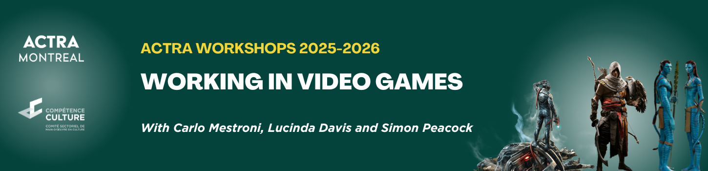 - Introduction to video games: 15:00 to 17:00 – 16 January 2026, at ACTRA Montreal’s Office